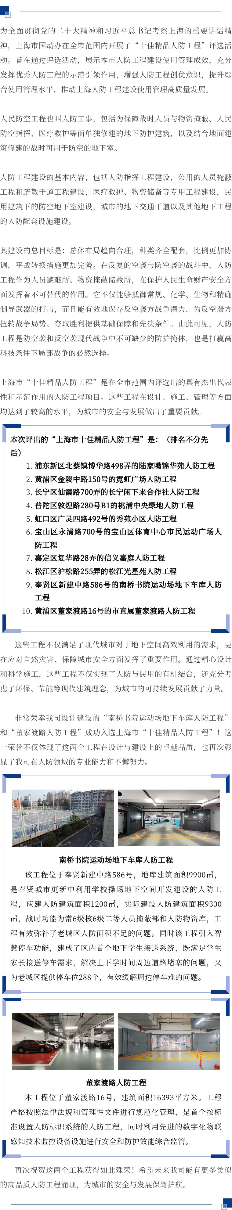 上海市“十佳精品人防工程”公布