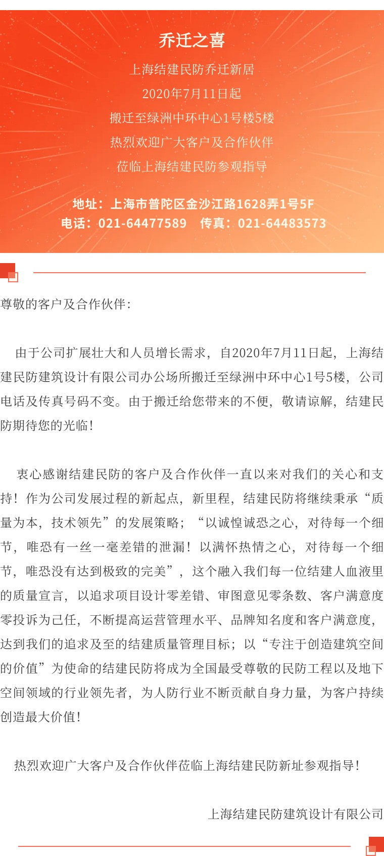 结建民防将于7月11日起启用新办公场所