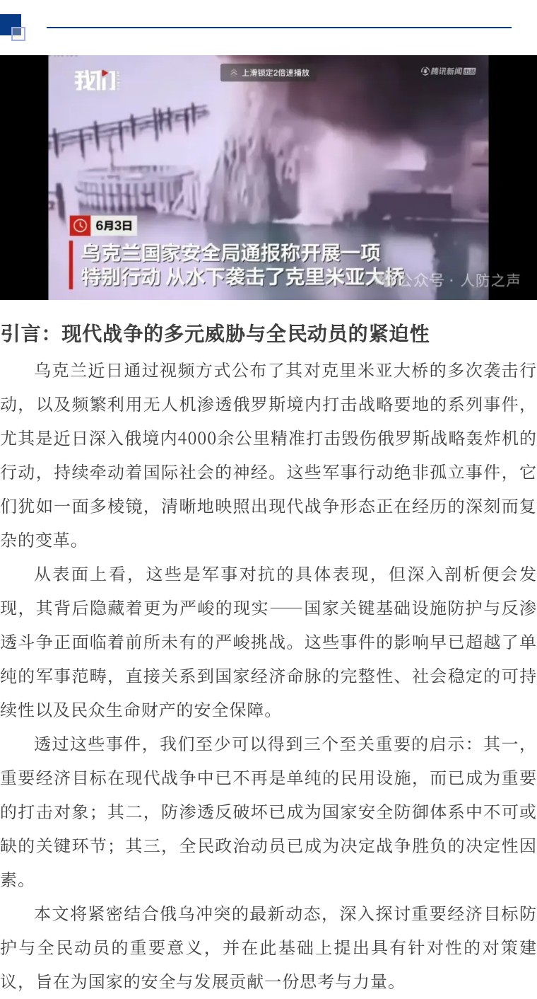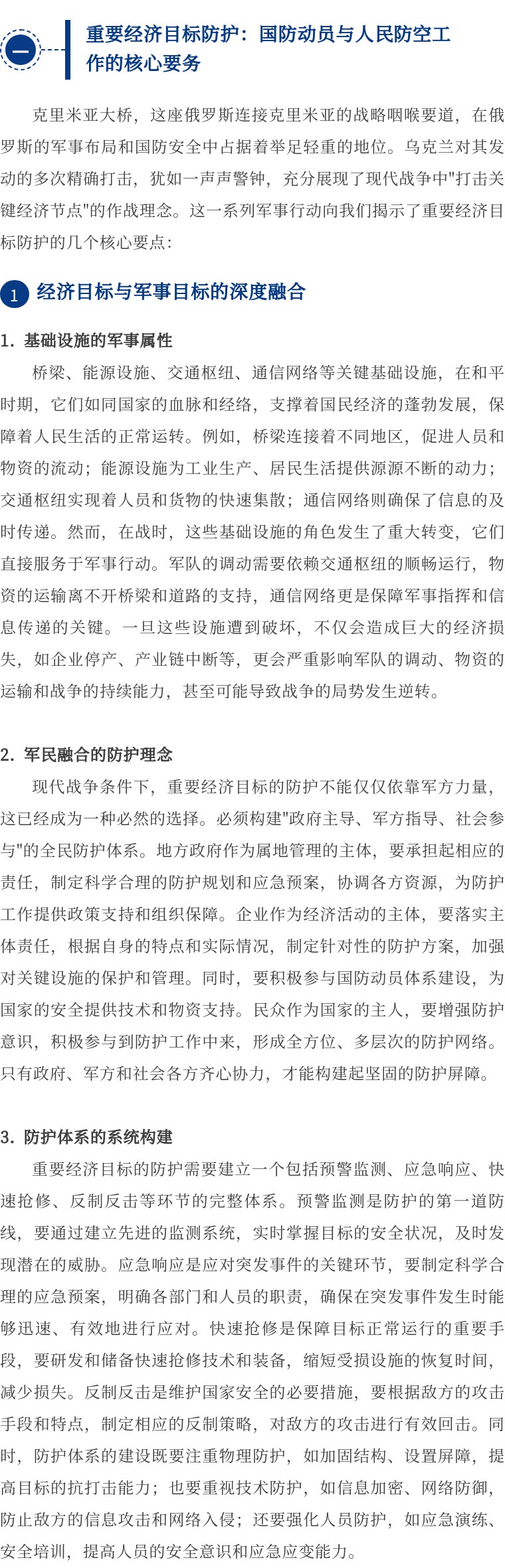 筑牢国防经济防线:从克里米亚大桥遇袭与俄乌无人机渗透战谈重要目标防护与全民动员